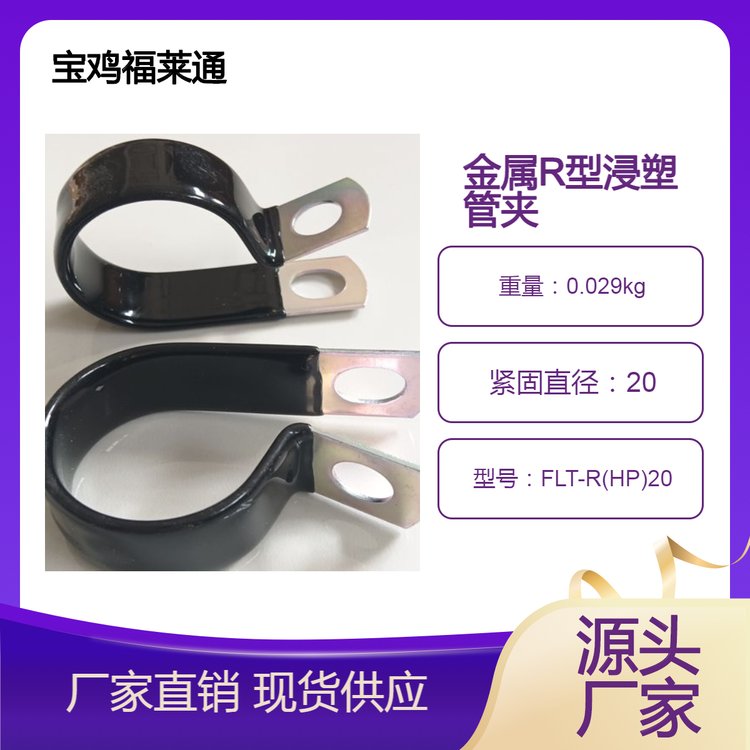 宝鸡福莱通牌的FLT-R(HP)20R型浸塑管夹气管水管固定卡箍镀锌涂塑胶条线卡福莱通产品:估价:0.67,规格:完善,产品系列编号:齐全 发布日期:2025-3-31