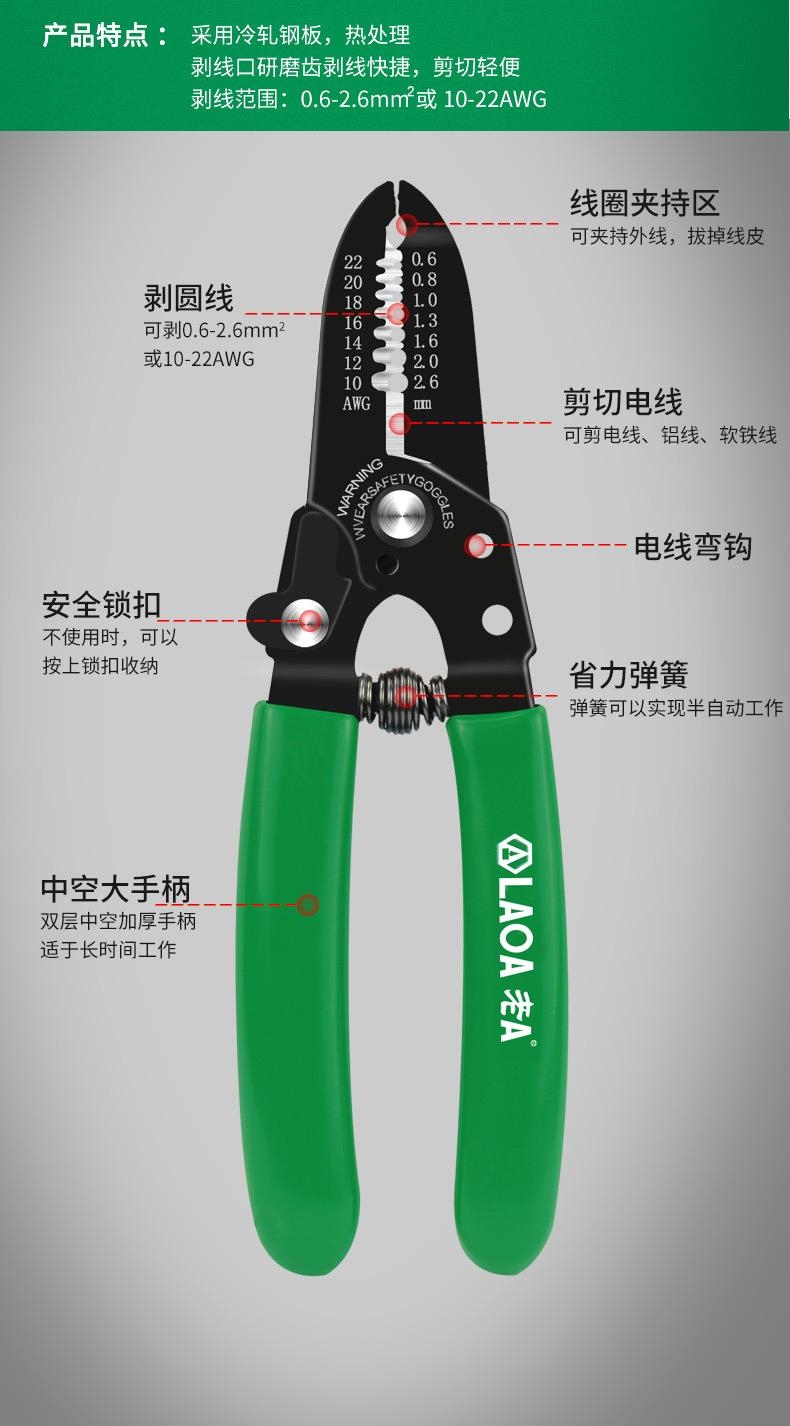 陕西西安老A工具总代理 老A工具剥线钳带刃口剥线钳0.6-2.6MM